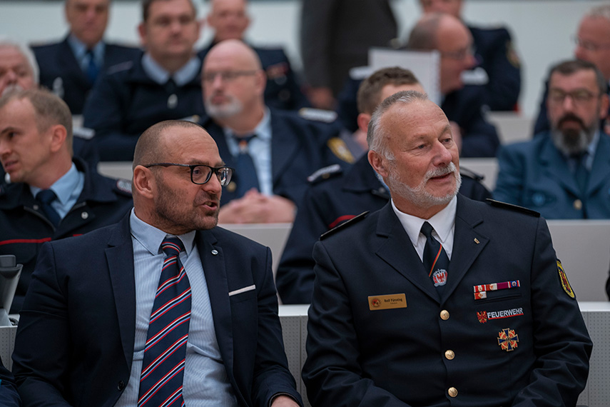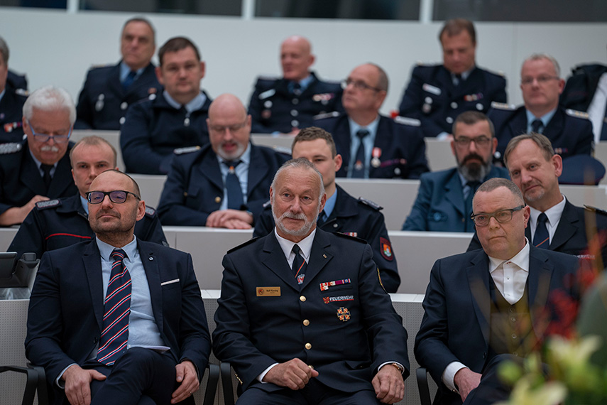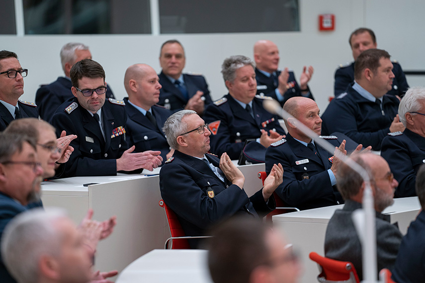 Am 22. November war das Präsidium des Landesfeuerwehrverbandes sowie Kameradinnen und Kameraden Freiwilliger Feuerwehren Brandenburgs in den Plenarsaal des Landtages eingeladen. Eingeladen hatte die CDU-Fraktion des Landtages. Nach den extremen Gefahrenlagen diesen Jahres, war es den Fraktionsmitgliedern ein Bedürfnis Danke zu sagen. Denn nur durch den herausragenden Einsatz der Kameraden und Kameradinnen der Feuerwehren und des THW konnte die zurückliegende Waldbrandsituation beherrscht, Hab und Gut vieler Brandenburger gerettet werden.