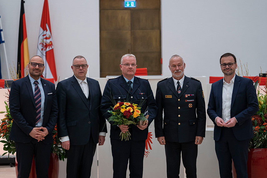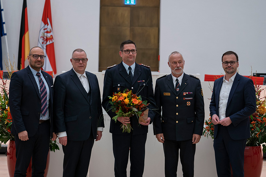 Die Preise gingen an Mirko Schneider, Kreisfeuerwehrverband Spree-Neiße e.V., Angela Kopp, Feuerwehr Golzow, Lars Göhring, Feuerwehr Amt Unterspreewald, Karin Hielscher, Feuerwehr Beeskow und Oliver Herrmann, THW Bad Belzig. Alle Preisträger zeichnet ein langjähriges Engagement, insbesondere bei der Nachwuchsgewinnung und – förderung sowie bei Einsätzen in der Waldbrandbekämpfung und im Katastrophenschutz, auch über unsere Landesgrenzen hinaus, aus.