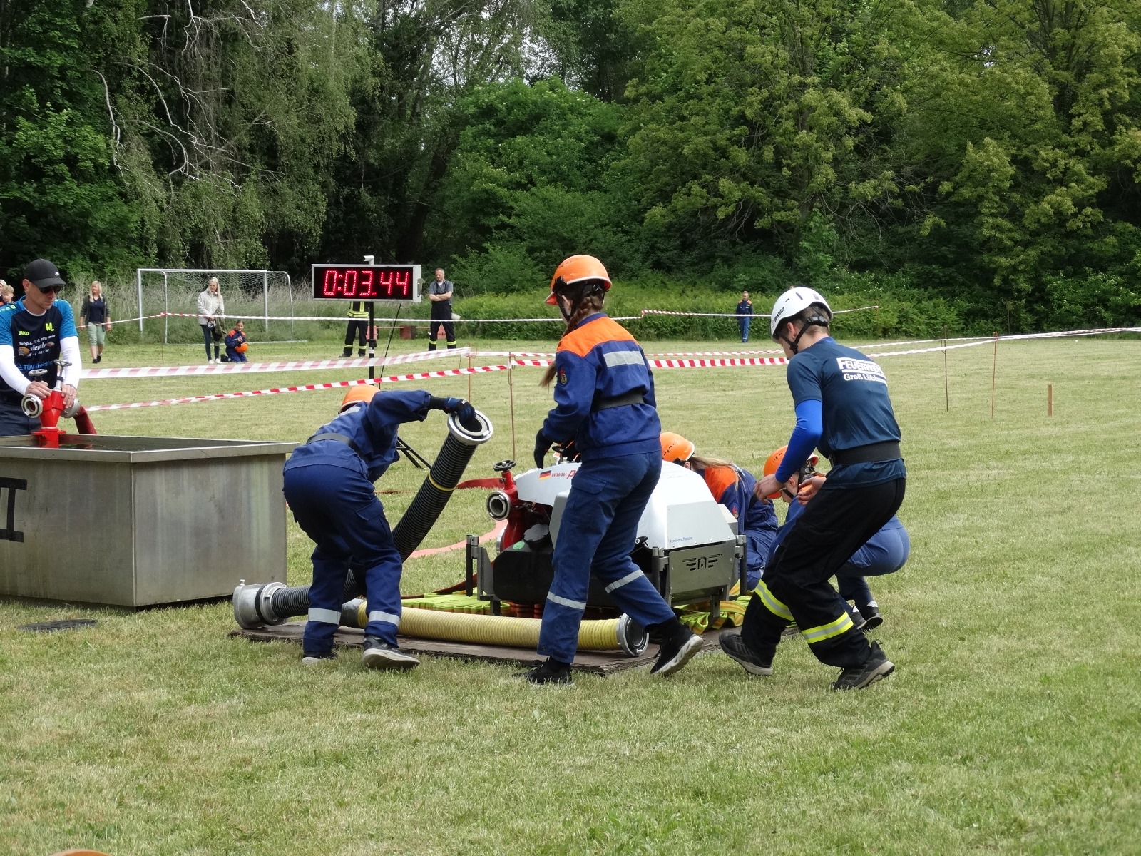 In der Wertung mit der TGL-Pumpe hatten bei den Frauen die Gehrener (LDS) die Nase vorn und siegten in 27,31 s vor Libbenichen (MOL) in 28,16 s und Zerkwitz (OSL) in 29,34 s. Bei den Männern siegte Willmersdorf-Stöbritz (LDS) in 22,92 s vor Genschmar (MOL) mit 23,12 s und Groß Lübbenau (OSL) in 23,28 s.