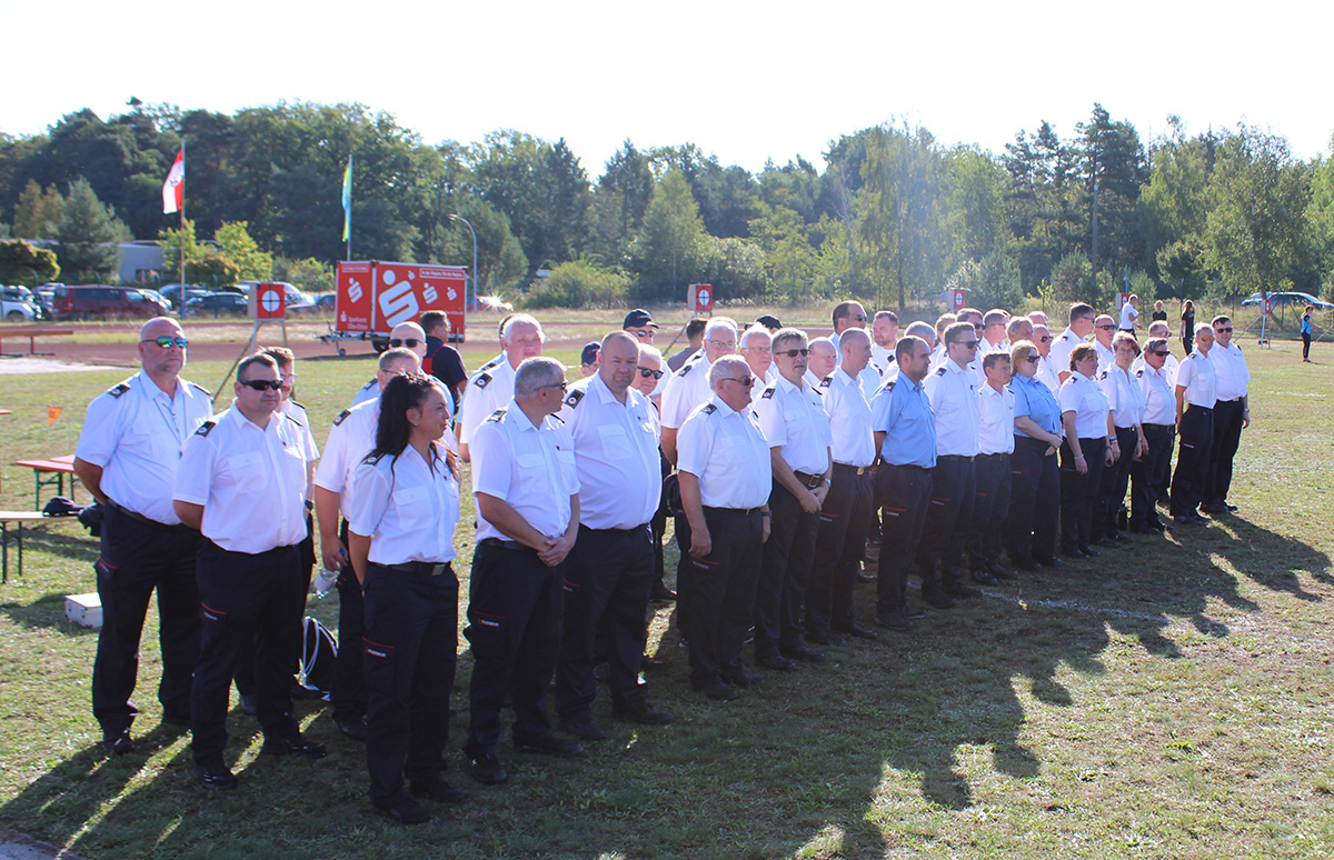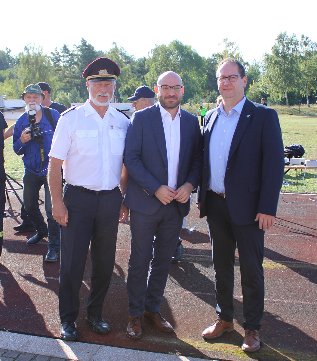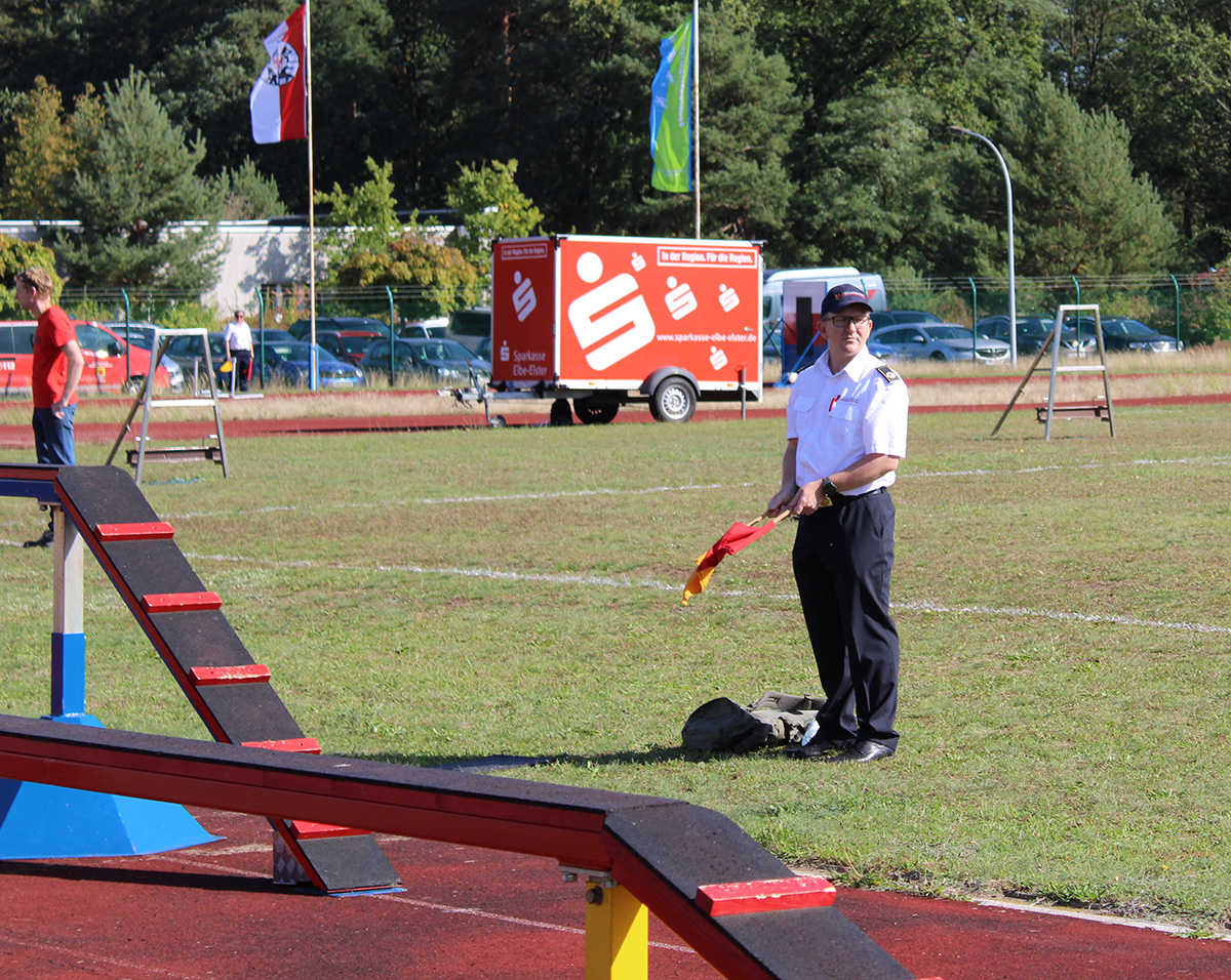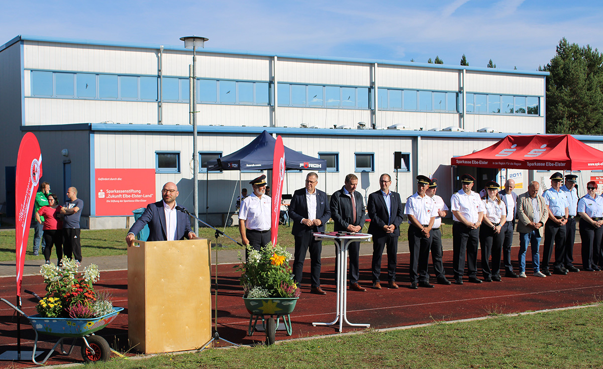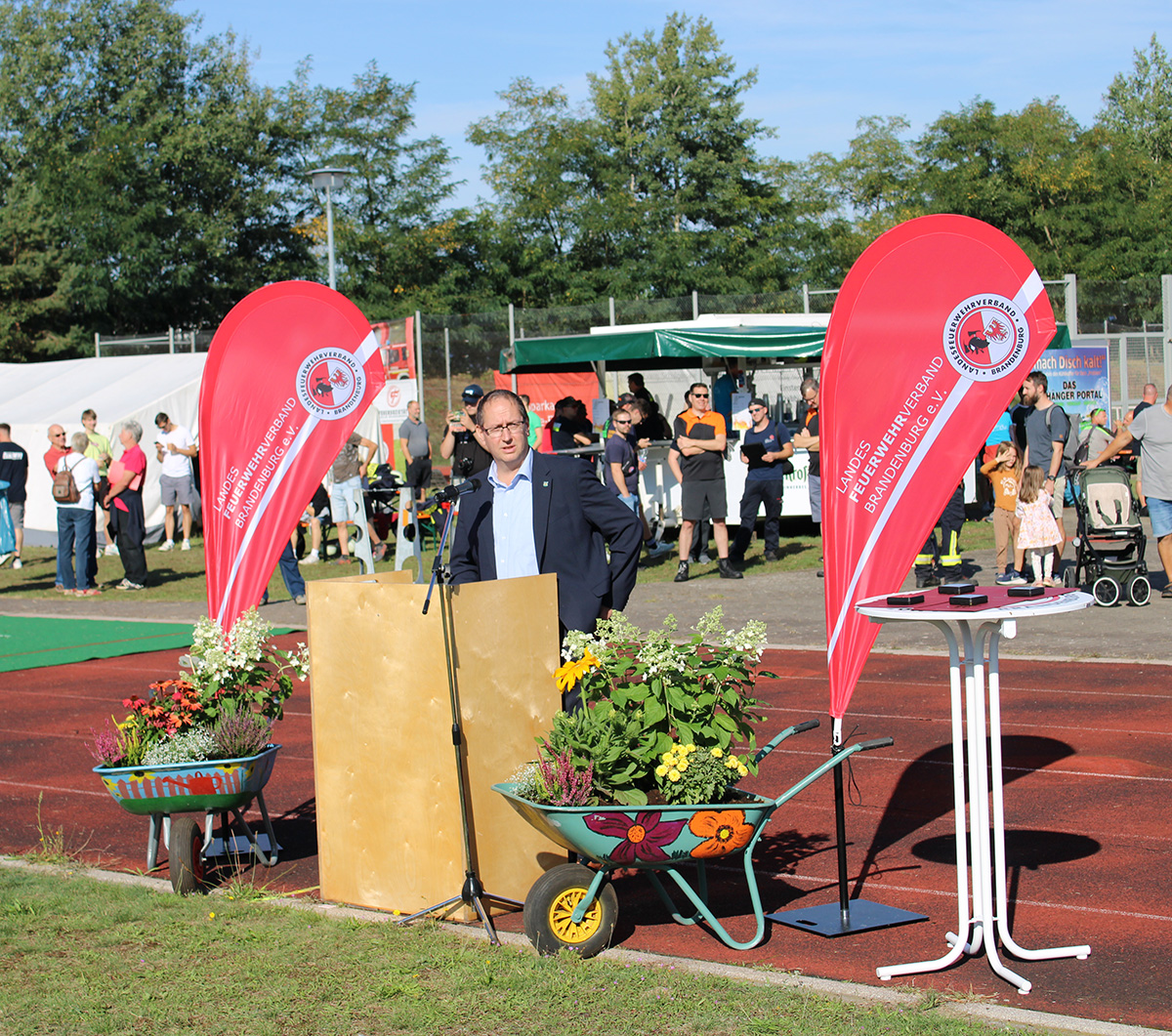 Neben René Wilke, Minister des Innern und für Kommunales des Landes Brandenburg, waren zahlreiche weitere Landes- und Kommunalpolitiker gekommen, um die Athletinnen und Athleten anzufeuern. So auch Landrat Christian Jaschinski, der sich bereit erklärt hatte die Schirmherrschaft für die 16. Landesmeisterschaften zu übernehmen. Er setzte damit ein wichtiges Signal und würdigte das ehrenamtliche Engagement der Kameradinnen und Kameraden. In seinen Grußworten warb er bei Minister Wilke noch einmal für finanzielle Unterstützung zur Instandhaltung der Wettkampfstätte, um auch weiterhin solche tollen Veranstaltungen durchführen zu können. Enrico Reiche, Bürgermeister von Doberlug-Kirchhain, zeigte sich beeindruckt von der besonderen Stimmung dieser Meisterschaften.