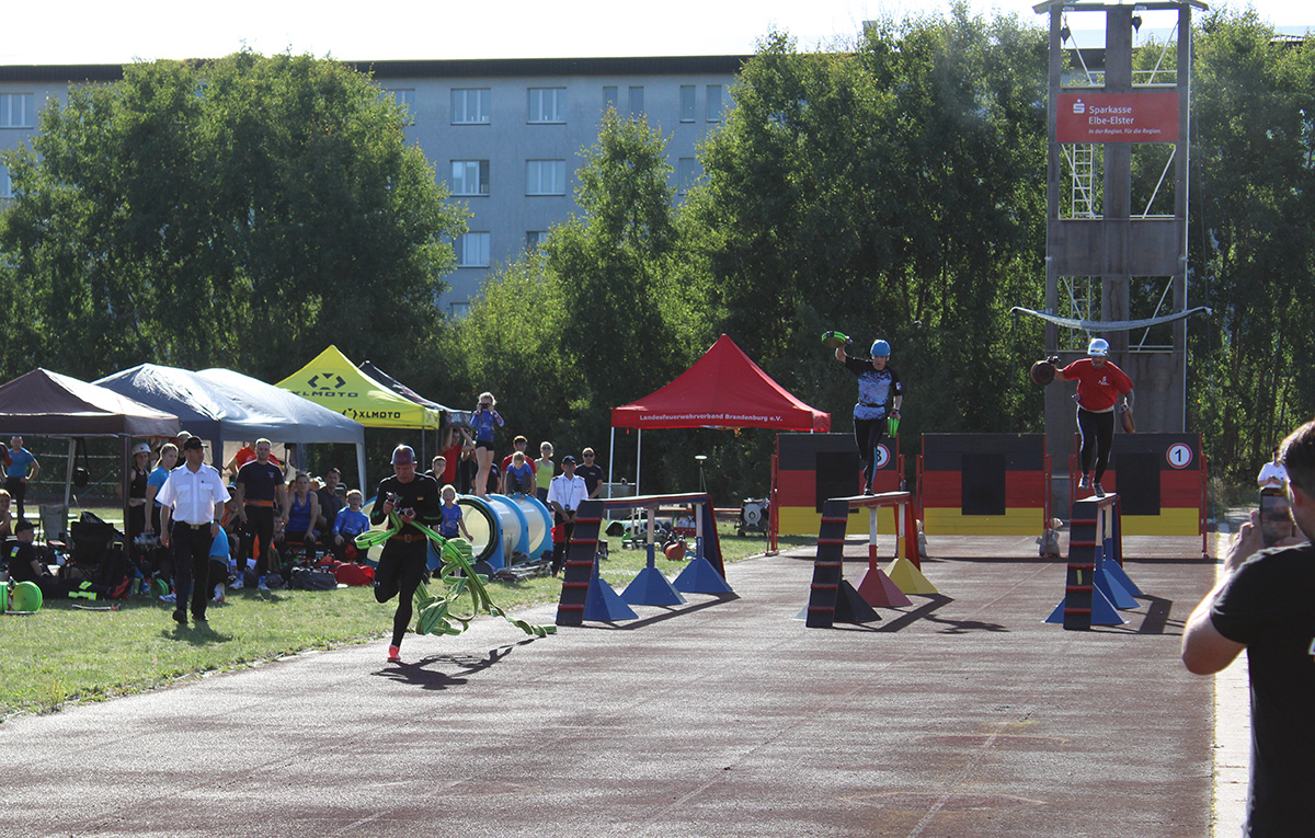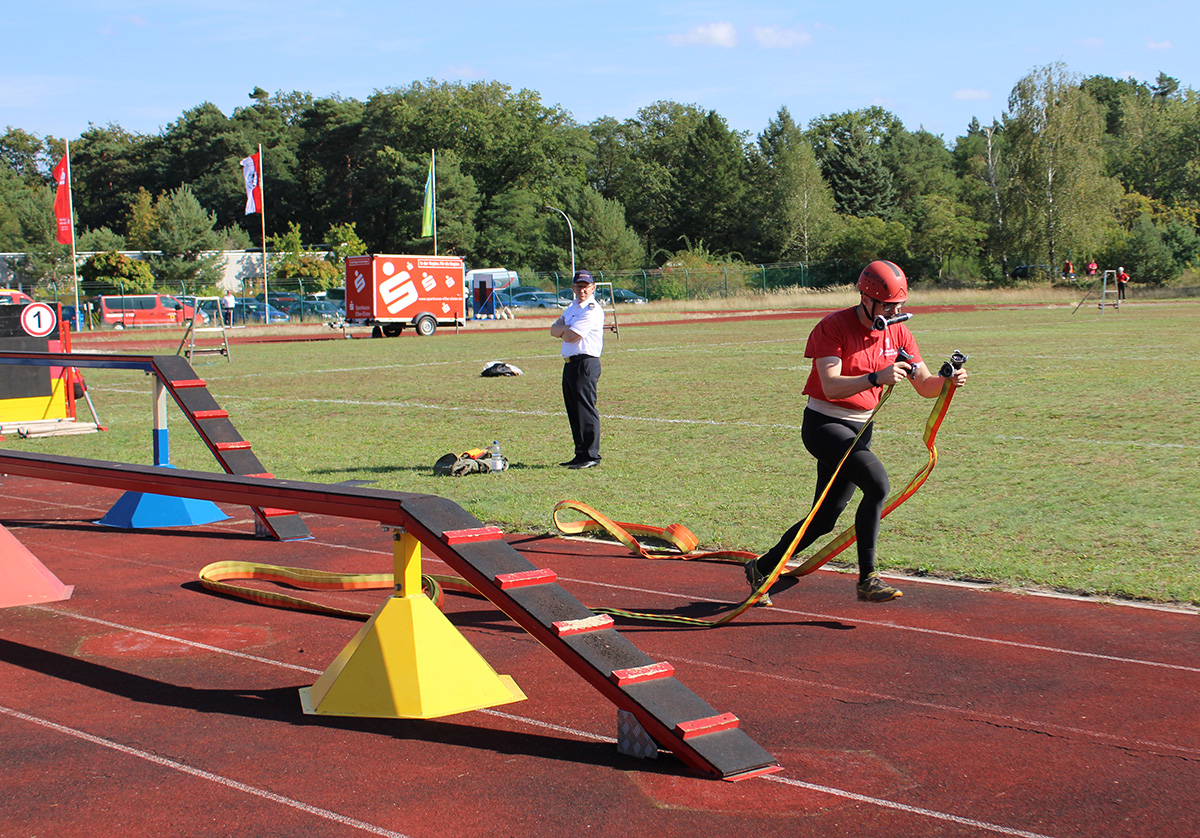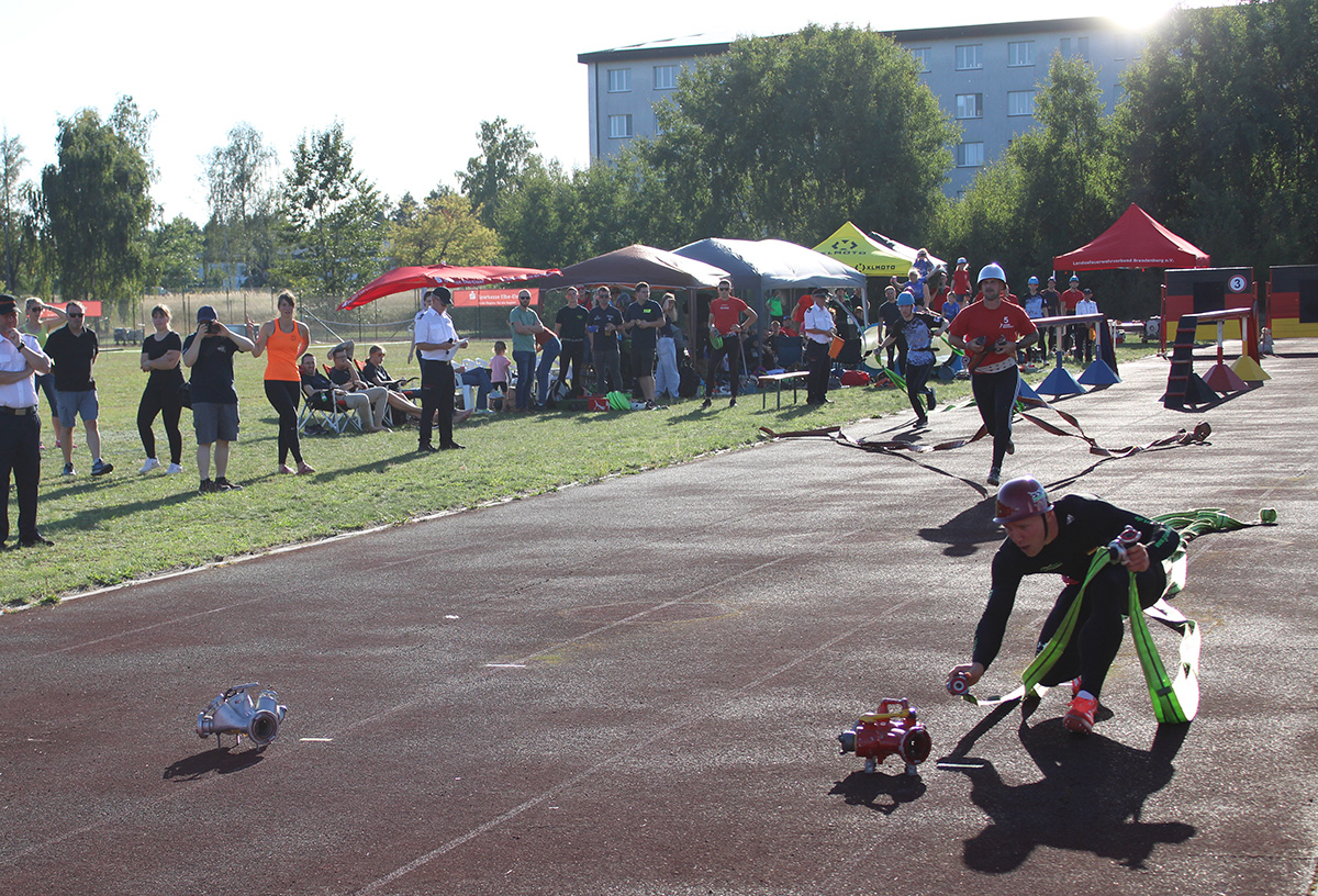 Bei der Feuerwehrhindernisstaffel 4 x 100m – Frauen sicherte sich das Team Lausitz A in einer Zeit von 70,70 Sekunden den Ersten Platz und bei den Männern das Team der BF Cottbus in 60,58 Sekunden.