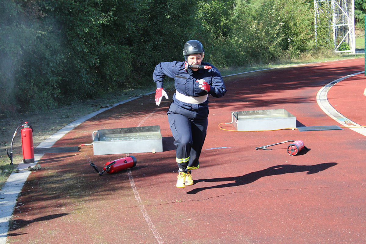 Die Wettkämpfe begannen am Freitagnachmittag mit der Feuerwehrhindernisstaffel sowie dem 100m Hindernislauf der Frauen und Männer. Bei viel Sonnenschein und Temperaturen um die 28 Grad eine besondere Herausforderung.
