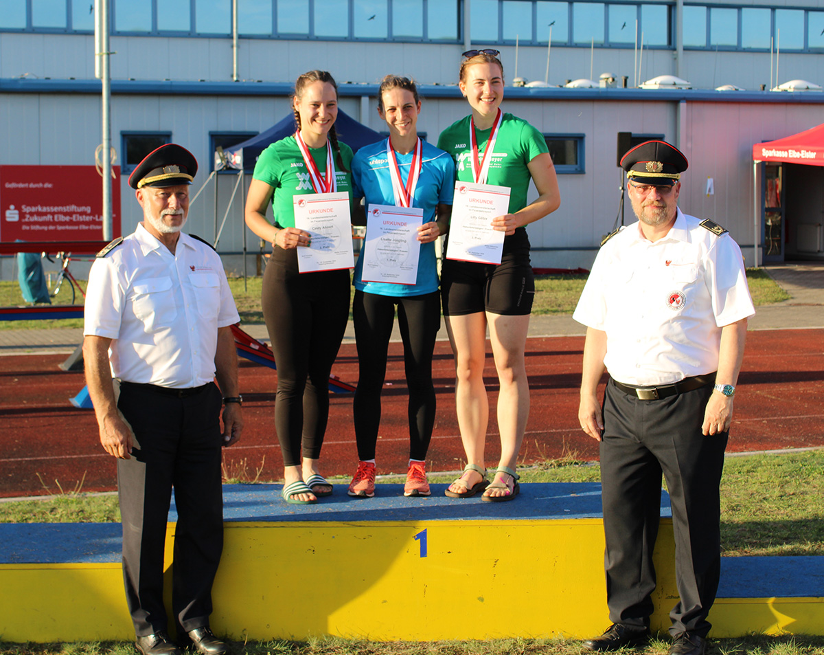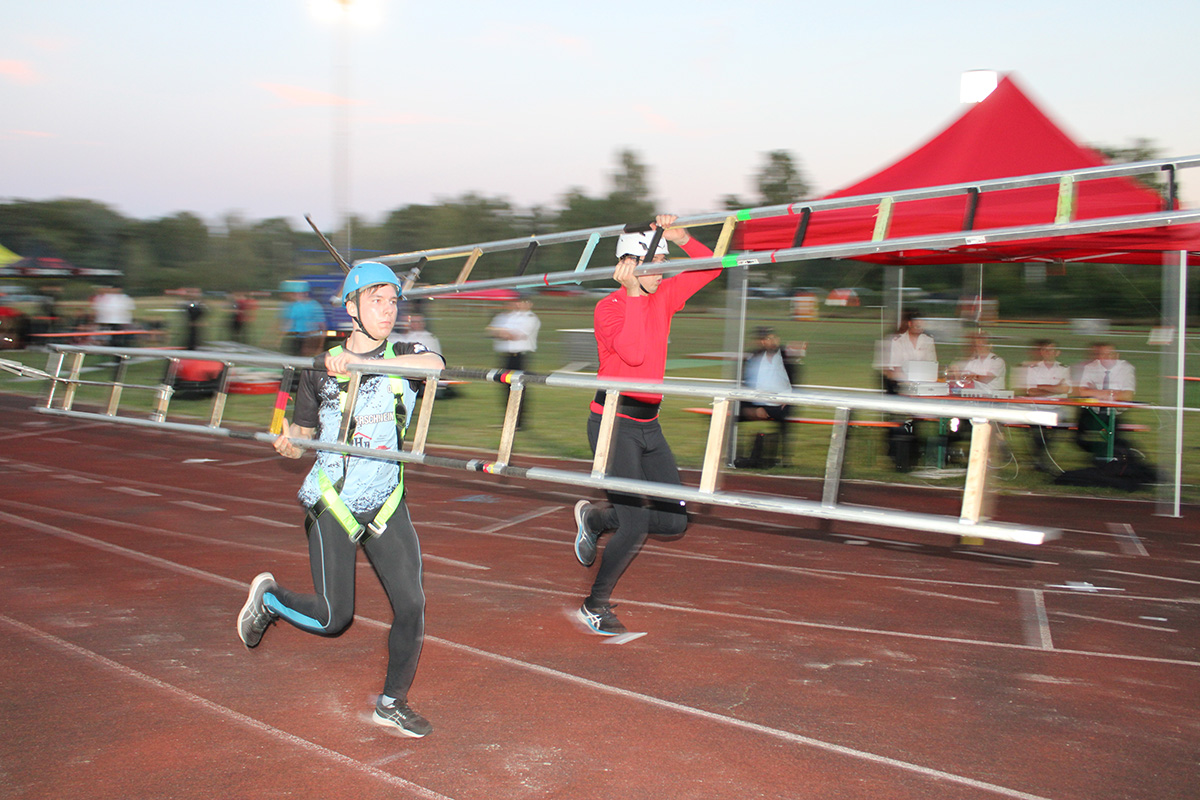 Anschließend wurden bis in die Abendstunden die besten Sportlerinnen und Sportler im Hakenleitersteigen ermittelt. Auch hier konnte Lisette Jüngling die beste Leistung abrufen und gewann in 8,00 Sekunden. Bei den Frauen U15 siegte Lena Gehlert in 10,42 Sekunden und bei den Frauen U20 Katharina Linke in 9,11 Sekunden. Bei den Männern erkämpfte sich Tom Gehlert den 1. Platz. Er bewältigte den Turm in 14,12 Sekunden. In der Klasse U15 war der Schnellste Ole Endemann in 7,83 Sekunden und in der Klasse U20 Ares Erdmann in 22,91 Sekunden.