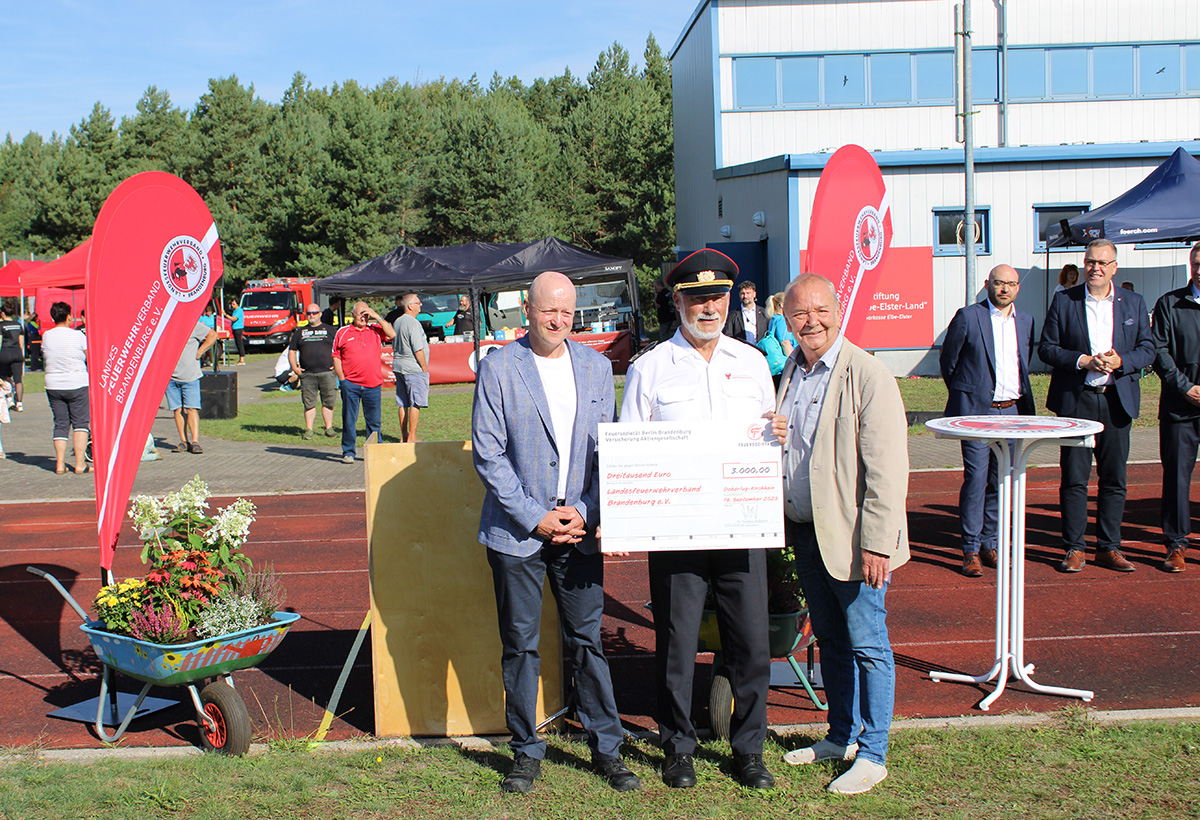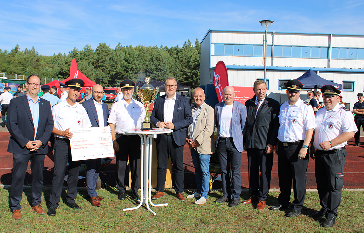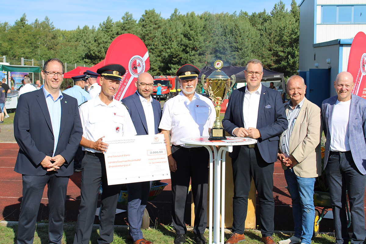 Die Feuersozietät unterstützte den Landesfeuerwehrverband Brandenburg zur Deutschen Meisterschaft und zur Landesmeisterschaft mit einer Spende in Höhe von 3.000 Euro und stiftete einen neuen Wanderpokal. Wir bedanken uns auch für den durch die DRK Kat-Schutz-Einheit Doberlug-Kirchhain bereitgestellten Sanitätsdienst und dem THW Ortsverband Herzberg, der die Beleuchtung am Steigerturm sicherstellte.