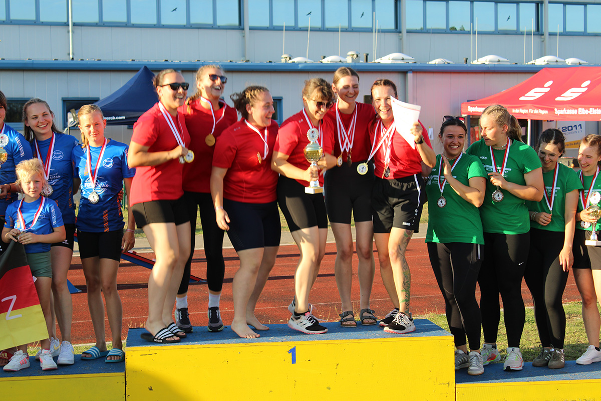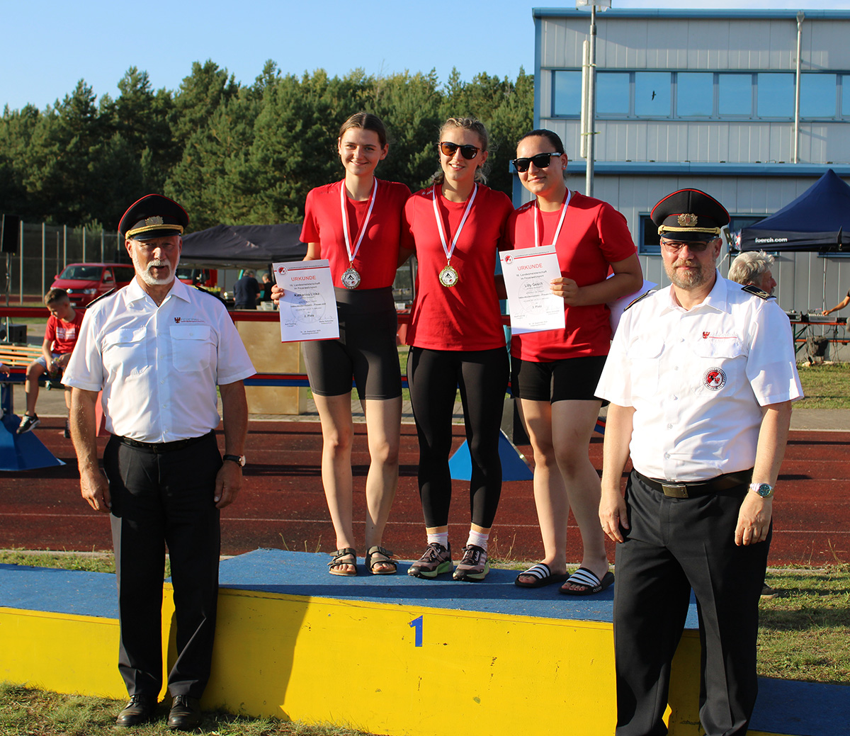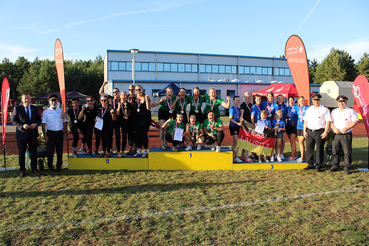 In der Gruppenstafette der Frauen belegte das Team Landkreis Dahme-Spreewald 1 in 90,22 Sekunden den 1. Platz vor dem Team Lausitz (94,48 Sek.) und der FF Libbenichen (95,24 Sek.).