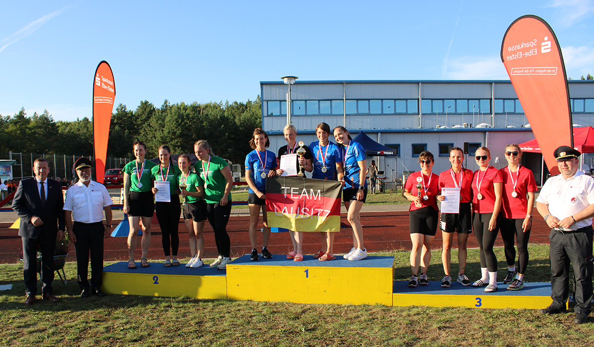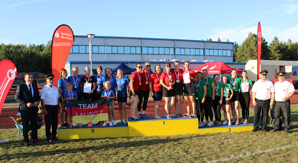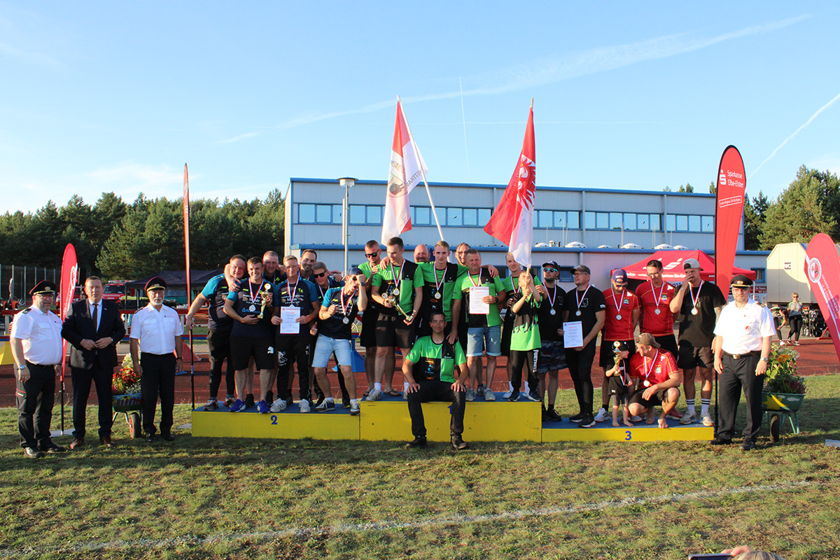 Die 16. Landesmeisterschaften im Feuerwehrsportwettkampf und im Traditionellen Internationalen Feuerwehrwettbewerb am 19. und 20. September in Doberlug Kirchhain haben den Teilnehmenden wieder einmal Höchstleistungen abgefordert. Über 800 Feuerwehrsportlerinnen und –sportler kämpften in den Sportdisziplinen und den Wettbewerben der Traditionellen Internationalen Feuerwehrdisziplinen um die Landesmeistertitel, Pokale und Medaillen des Landesfeuerwehrverbandes Brandenburg. „Die Landesmeisterschaften waren ein toller Erfolg. Die Zuschauer waren begeistert und alles war sehr gut organisiert“, so das Resümee von Rolf Fünning, Präsident des LFV Brandenburg.