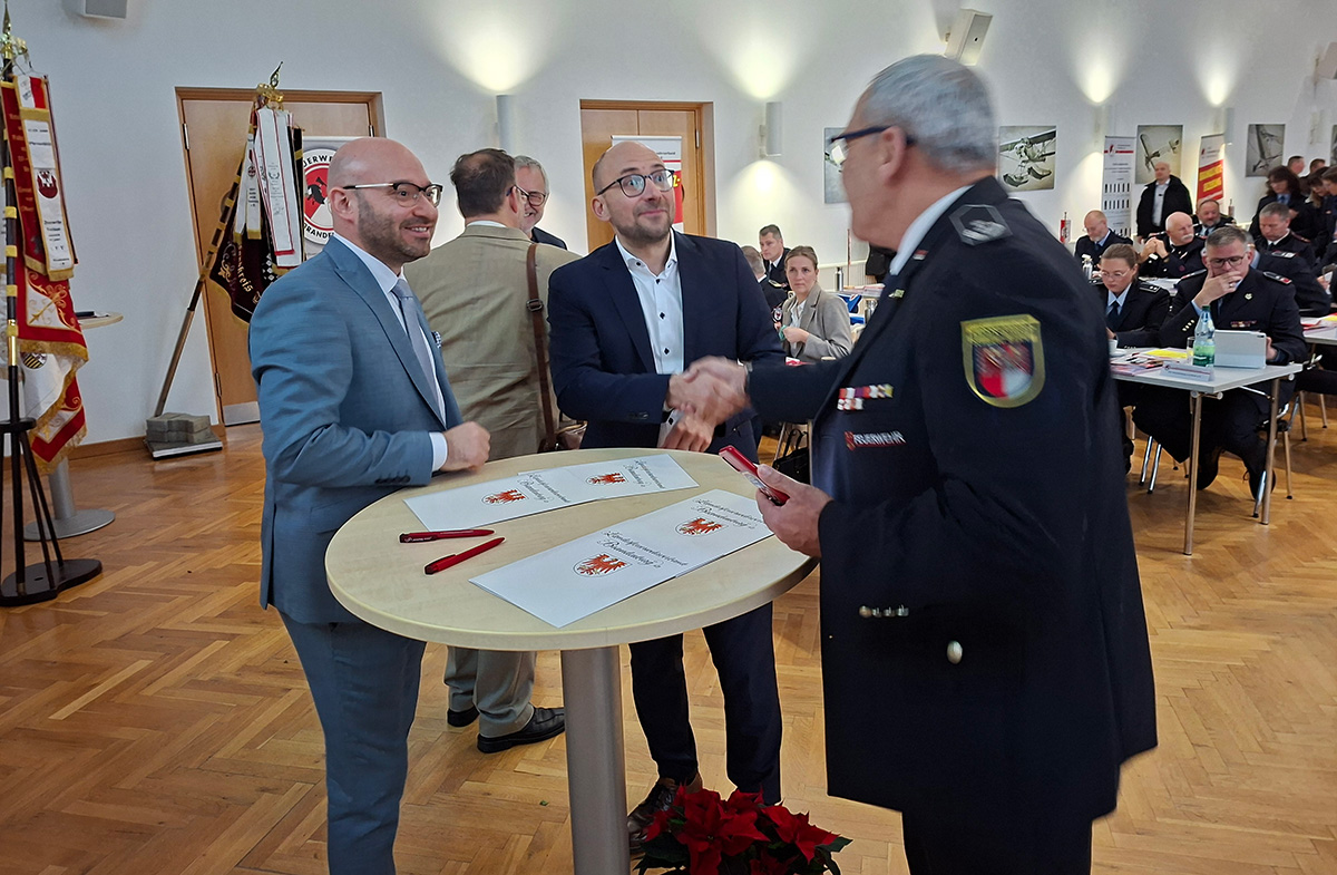 Die Veranstaltung bot darüber hinaus auch einen würdigen Rahmen, um verdiente Kameraden für ihr ehrenamtliches Engagement auszuzeichnen. Mit dem Ehrenkreuz des Landesfeuerwehrverbandes wurden: