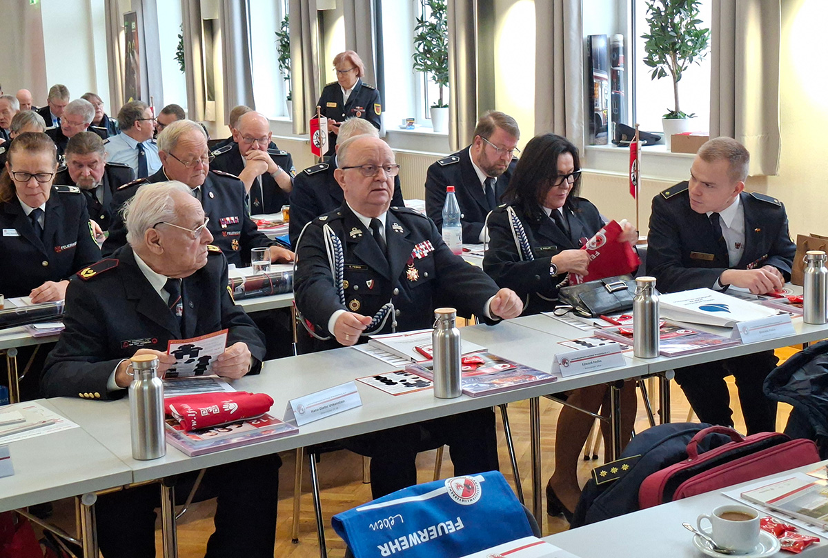 Nach der Feststellung der ordnungsgemäßen Einladung und der Beschlussfähigkeit ging es im verbandlichen Teil der Veranstaltung u.a. zunächst um die Abschlüsse und damit die Entlastung des Präsidiums für das Jahr 2024 sowie die Bestätigung des Haushalts für 2026. Die Delegierten beschlossen einstimmig die vorliegende Haushaltsrechnung 2024 des Landesfeuerwehrverbandes Brandenburg e.V. mit der Teilhaushaltsrechnung der Landesjugendfeuerwehr. Somit konnte die Entlastung des Präsidiums und der Geschäftsführerin für das Jahr 2024 beschlossen werden. In einem weiteren Beschluss stimmten die Delegierten der Haushaltsplanung 2026 des LFV mit dem Teilhaushalt der Landesjugendfeuerwehr zu.