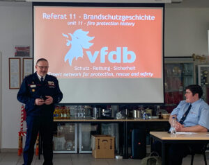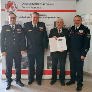 Natürlich werden auch wieder die Seminare zur Weiterbildung angeboten. Als Gäste konnten Bernd Klaedtke (Nationaler Vertreter der CTIF-Geschichtekommission) und Carsten Löwe (Vorsitzender des Referat 11 in der vfdb) begrüßt werden. Sie zeichneten Hans-Dieter Unkenstein mit der Verdienstmedaille des CTIF in Silber aus.