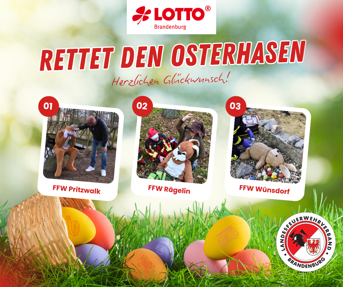 Vielen Dank! Wir freuen uns über die zugesandten Bewerbungsvideos, die uns zum Wettbewerb „Ostern trifft Feuerwehr“ erreicht haben. Im Finale treten die: – Freiwillige Feuerwehr Pritzwalk – Freiwillige Feuerwehr Rägelin – Freiwillige Feuerwehr Wünsdorf Gegeneinander an. Jetzt ist es an […]